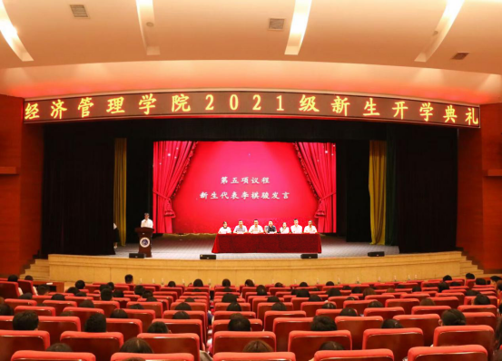9月14日上午,经济管理学院2021级新生开学典礼在杏坛举行。学院文卫院长、郭智伟副书记、谭燕副院长,各科室负责人、班导班和教师代表、学生会干部及2021级638名同学参加了开学典礼。开学典礼由办公室主任蒋春容主持。