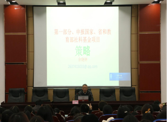 余晓钟教授分别从“申报国家、省和教育部社科基金项目”和“论文写作与发表”两个方面进行讲解,结合自身丰富的科研经验,从课题申报的类型、申报书的结构、内容、注意事项等几个方面进行了经验分享。同时,余教授还鼓励大家多参与国内外学术会议,开拓自己的眼界和视野,有助于科研项目申报和论文写作。