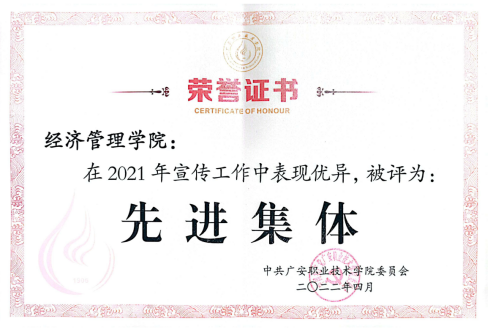4月6日,学院因在新闻媒体报道方面表现优异,荣获2021年度宣传工作先进集体。