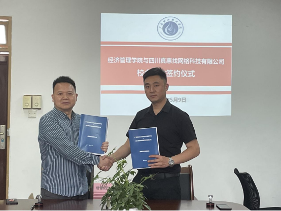 2022年5月9日,学院与四川真惠找网络科技有限公司在明德楼213进行签约,出席签约仪式的有院长文卫、总支书记谭燕、教学科长邓小辉、电商物流教研室主任徐娟、专业教师蒋星怡,公司股东宋志君、周亮和人事总监李春池参加了本次会议。