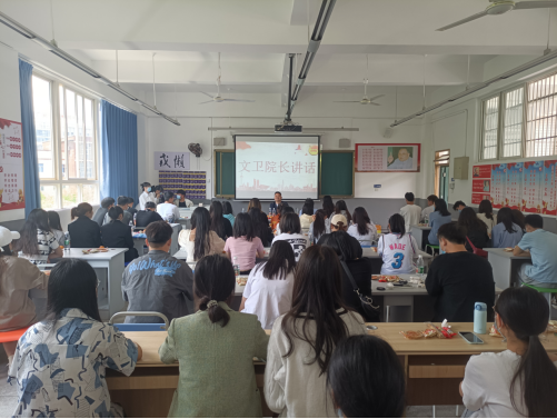 文卫向参会的团学联干部代表和各族青年学生代表,致以节日的问候!希望同学们满怀对祖国的赤子之心,学好专业知识积极投身到建设社会主义现代化国家的伟大事业,把最美好的青春献给祖国和人民,谱写了一曲又一曲壮丽的青春之歌。并对青年学生未来发展,提出了五点希望:一是坚定信念,永远信党爱党;二是要爱国,忠于祖国,忠于人民;三是要励志,立鸿鹄志,做奋斗者;四是要求真,求真学问,练真本领;五是要力行,知行合一,做实干家。