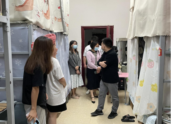 按照学校新型冠状病毒肺炎防控工作统一部署,成立了心理咨询、宣传报道和安全保障等三个工作组,分别由班子成员任小组长,负责疫情防控工作的组织、协调等工作。5月14日晚上9点半,心理咨询组组长文卫院长带领留守的学生科和专职辅导员等一行4人,走访了20级、21级大数据与会计、市场营销、电子商务、旅游管理、现代物流管理和酒店管理与数字化运营等专业所在班级。老师们每走到一间寝室都受到同学们的热烈欢迎,并与同学们进行了亲切交谈:“同学们第一时间给家里报平安了吗?要给家里人说、校园是安全的,请放心!老师与同学们同在,共度难关,战胜疫情”等轻松话题。