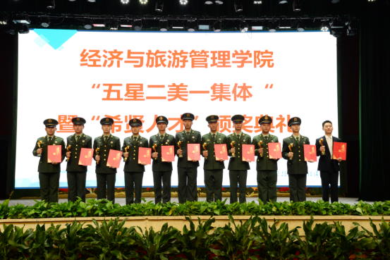 11月7日晚上,经济与旅游管理学院2023年度“五星二美一集体”暨“希贤人才”颁奖典礼在杏坛举办,学院党总支书记谭燕、副书记杨燕、副院长邓小辉、各科室负责人、获奖同学以及大一、大二全体同学参加了颁奖盛典。颁奖盛典在庄严的国歌中拉开了序幕,参会领导为获奖同学颁奖,获奖代表发表了获奖感言。