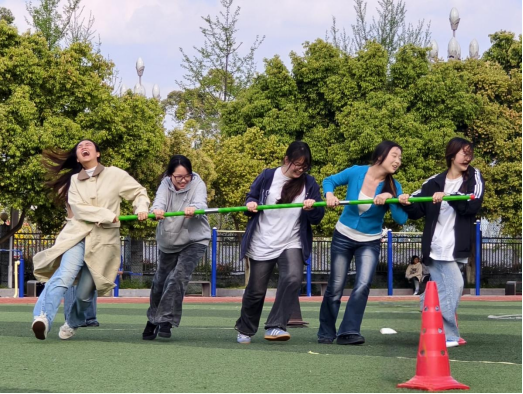 赛场上,同学们热情高涨、默契配合十人九足项目中,大家步调一致、携手向前运球接力里,背靠背夹球的搭档们小心翼翼、稳步前行摸石过河赛道上,选手们灵活换石、接力冲刺一圈到底环节中,全员手拉手传递呼啦圈,尽显集体凝聚力每一个项目都充满欢声笑语,既考验了团队协作能力,也让同学们在运动中释放了压力、收获了快乐。