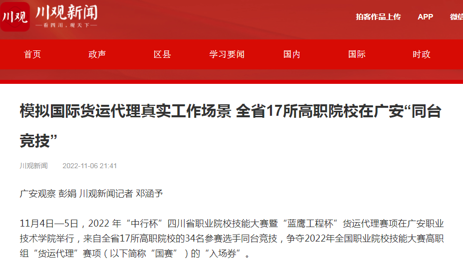 川观新闻:模拟国际货运代理真实工作场景 全省17所高职院校在广安“同台竞技”
