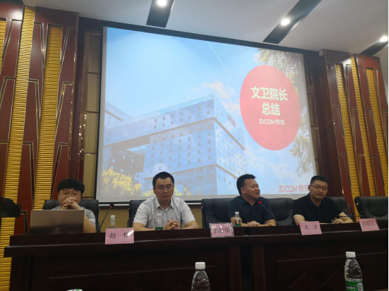 7月2日中午,学院“6.18京东实训月总结暨表彰大会”在希贤厅举行。出席本次会议有学院院长文卫、党总支书记喻忠、副书记郭智伟、京东零售经理、企业指导老师、营销教研室全体老师和19级市场营销专业同学。