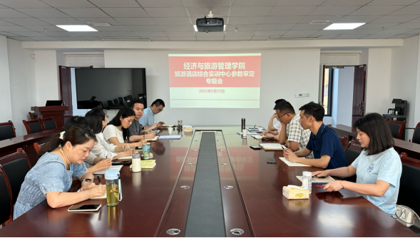 5月13日下午,经济与旅游管理学院于经管大楼1101会议室召开旅游酒店综合实训中心参数审定专题会议。会议由副院长张浩主持,学院党总支书记吴小平、院长郭智伟、党总支副书记杨燕及旅游管理、酒店与数字化运营专业带头人、实训室建设团队等10余人参会,共同为实训中心建设把脉定向。