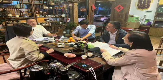 为推动我院旅游管理专业产学研协同创新,提升人才培养质量,寻求校企合作共赢、共谋发展的良好局面。10月23日晚,学院副院长邓小辉带领旅游管理专任教师走访地方校企合作企业广安森林雨茶叶有限责任公司开展调研座谈,商讨校企深度合作事宜。