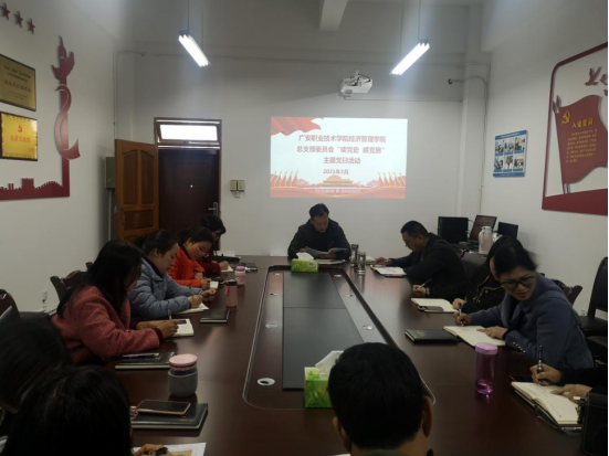 3月23日下午,经济管理学院党总支教师党支部和学生党支部全体教师党员在明德楼213党员活动室开展“学党史 感党恩”主题党日活动,学生党员通过线上方式参与了主题党日活动。