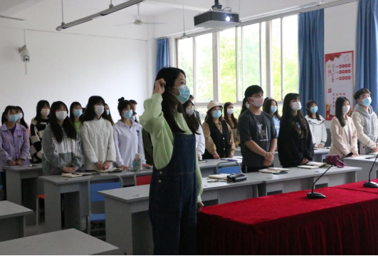 “立足伟人故里,激发爱国情怀;坚定理想信念,传承红色基因;……求学志存高远,青春告白祖国;践行时代精神,共筑民族复兴。”学生会主席巫菲菲带领团学联全体干部重温《新生入院誓词》,表达了“不忘求学初心,坚定理想信念,践行时代精神,共筑民族复兴。”这一庄重承诺。拉开了此次培训会的序幕。